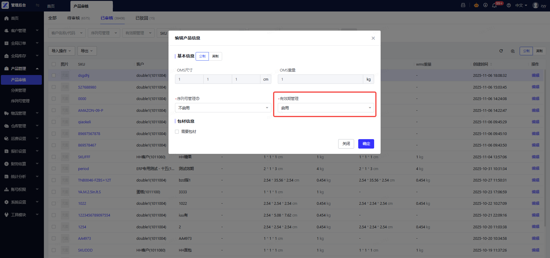 a、在【管理后台-产品审核-编辑】中开启有效期管理。