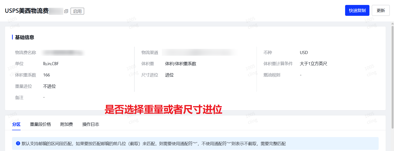 3、 如果物流费有设置重量进位,则实际的计费重是向上取整取值的,例如包裹实际的重量是2.01,重量进位之后的取值是34、 排查上述问题,若确认物流费设置没有问题,则需要跟尾程物流确认是否是当前的渠道不支持该重量的包裹的派送,需要更改渠道