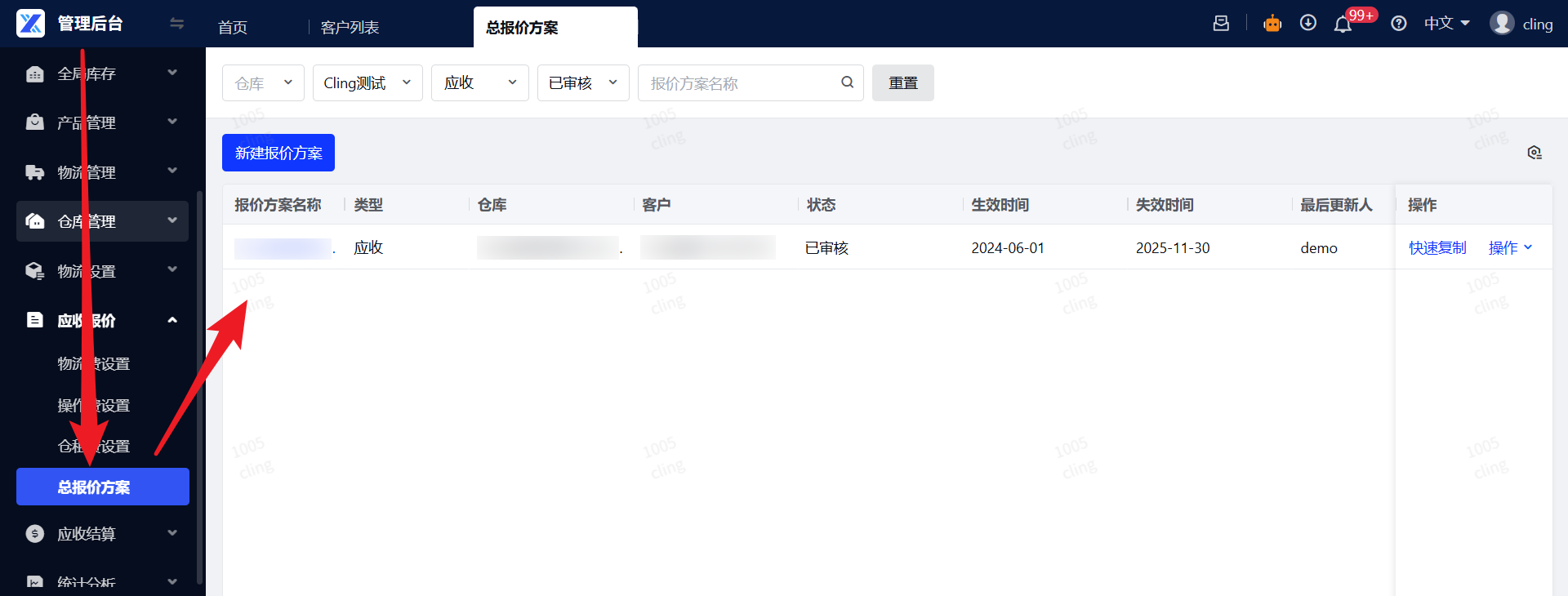 - 排查路径:OMP—应收报价—【总报价方案】-按照客户代码和仓库进行搜索