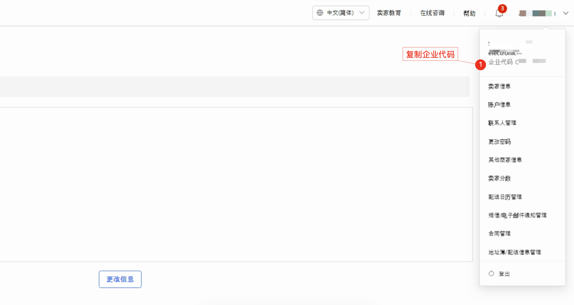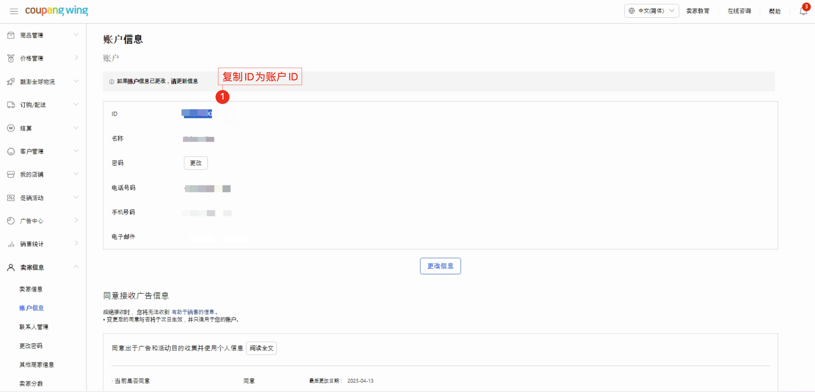 (1)登录店铺后台:进入【账户信息】页面,复制账号ID