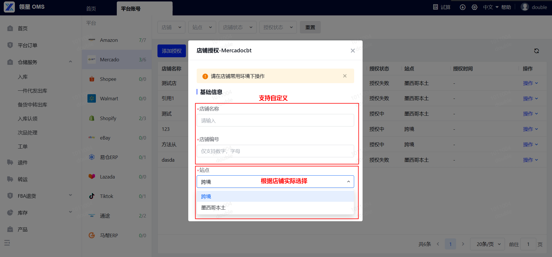 Q2:美客多一个店铺可以授权多个OMS账号吗?