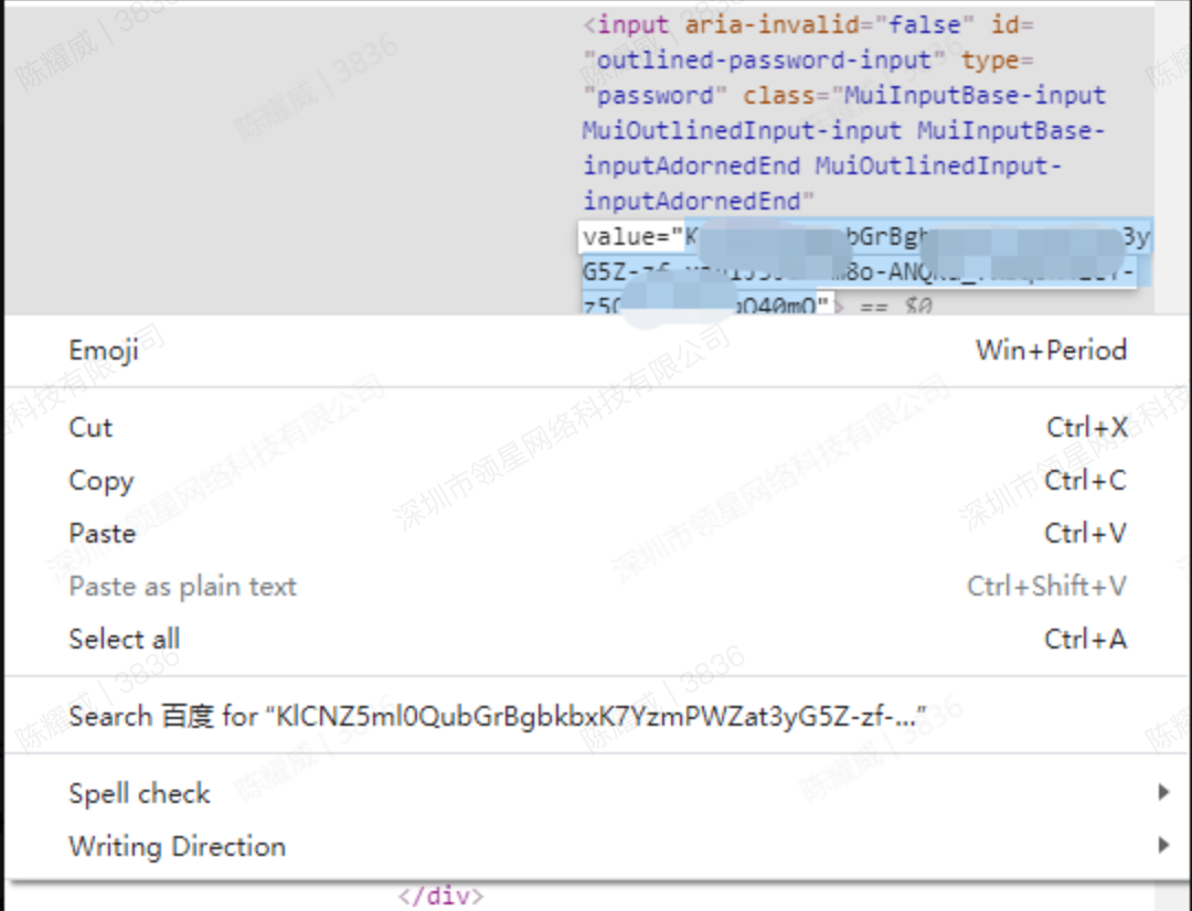 答:目前紫鸟的策略是针对网页所有的密码框都做了加密处理,不允许改为可见。现在最快的办法只有一个是按下F12按键,点击右上角箭头后,把鼠标移动到输入框然后选择到这个输入框,双击value,然后复制这个value值。