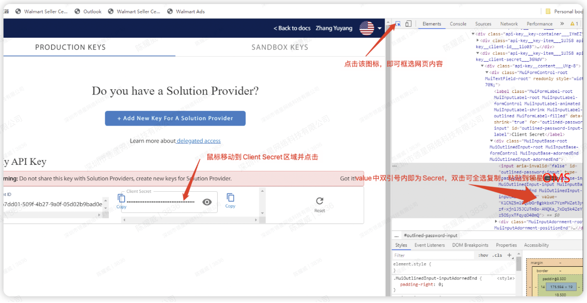 ● 授权信息:Walmart仅支持选择US站点,填写上述步骤获取到的Client Secret 和 Cilent ID复制到对应框内,点击【前往授权】。