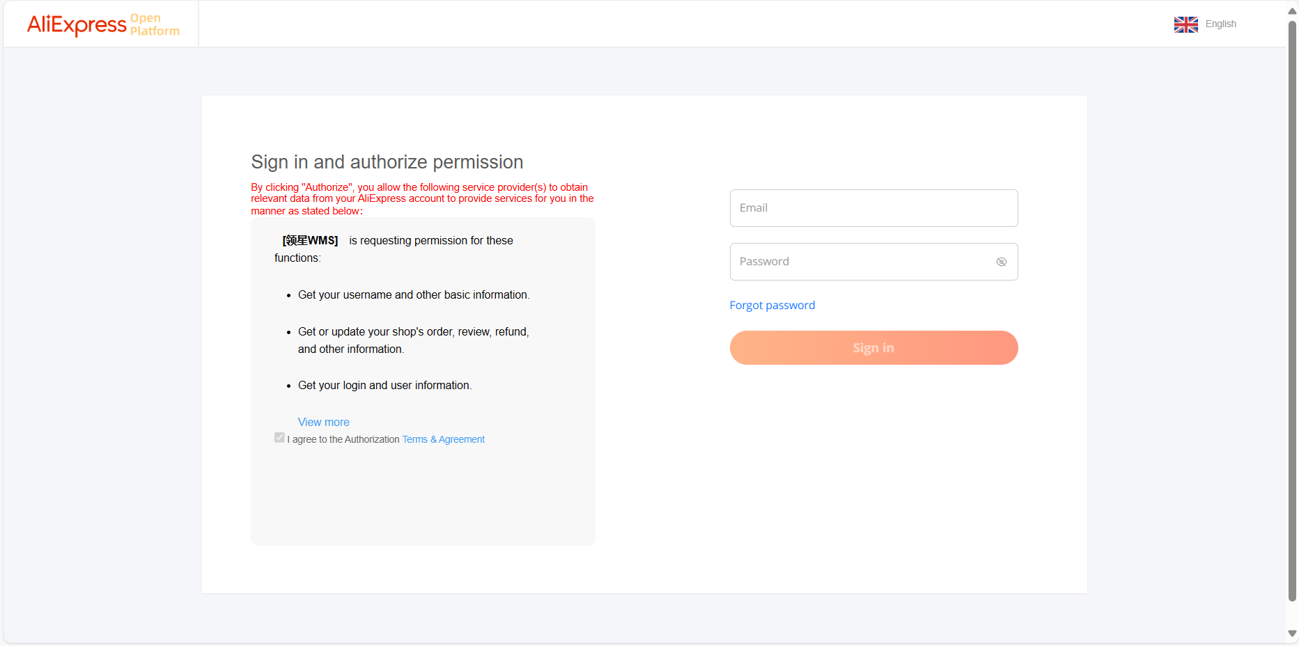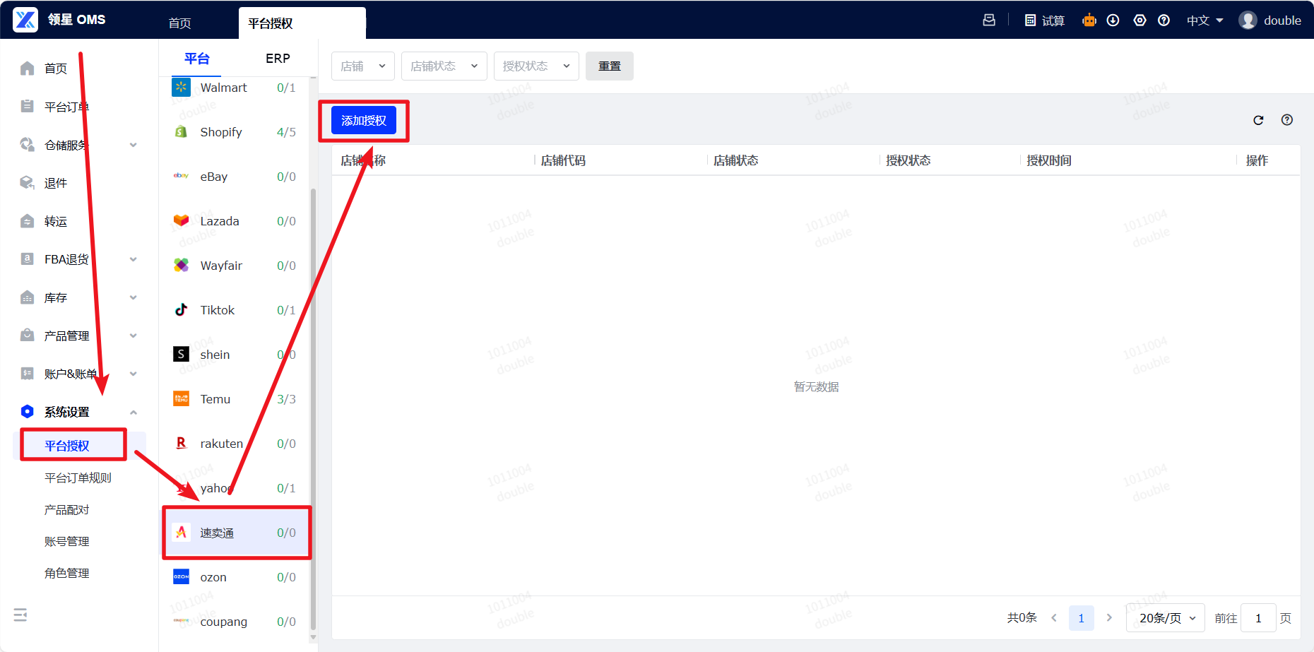 登录领星OMS >系统设置 > 平台授权 >速卖通 > 添加授权