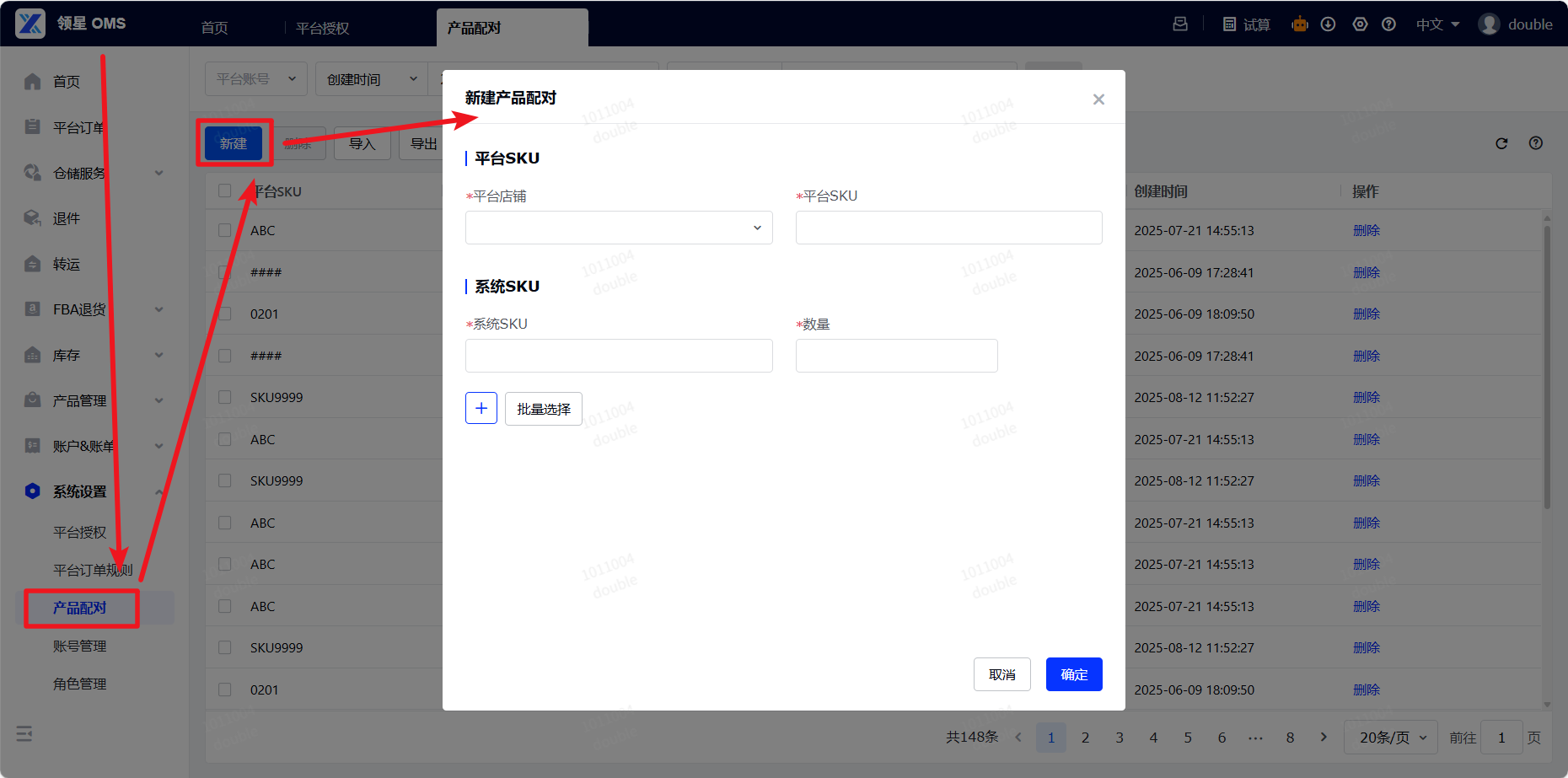 产品配对:将平台上的产品SKU与系统产品SKU绑定,消费者在平台下单时选择的平台SKU,系统根据产品配对关系,会自动匹配对应的系统SKU和数量实现出库发货