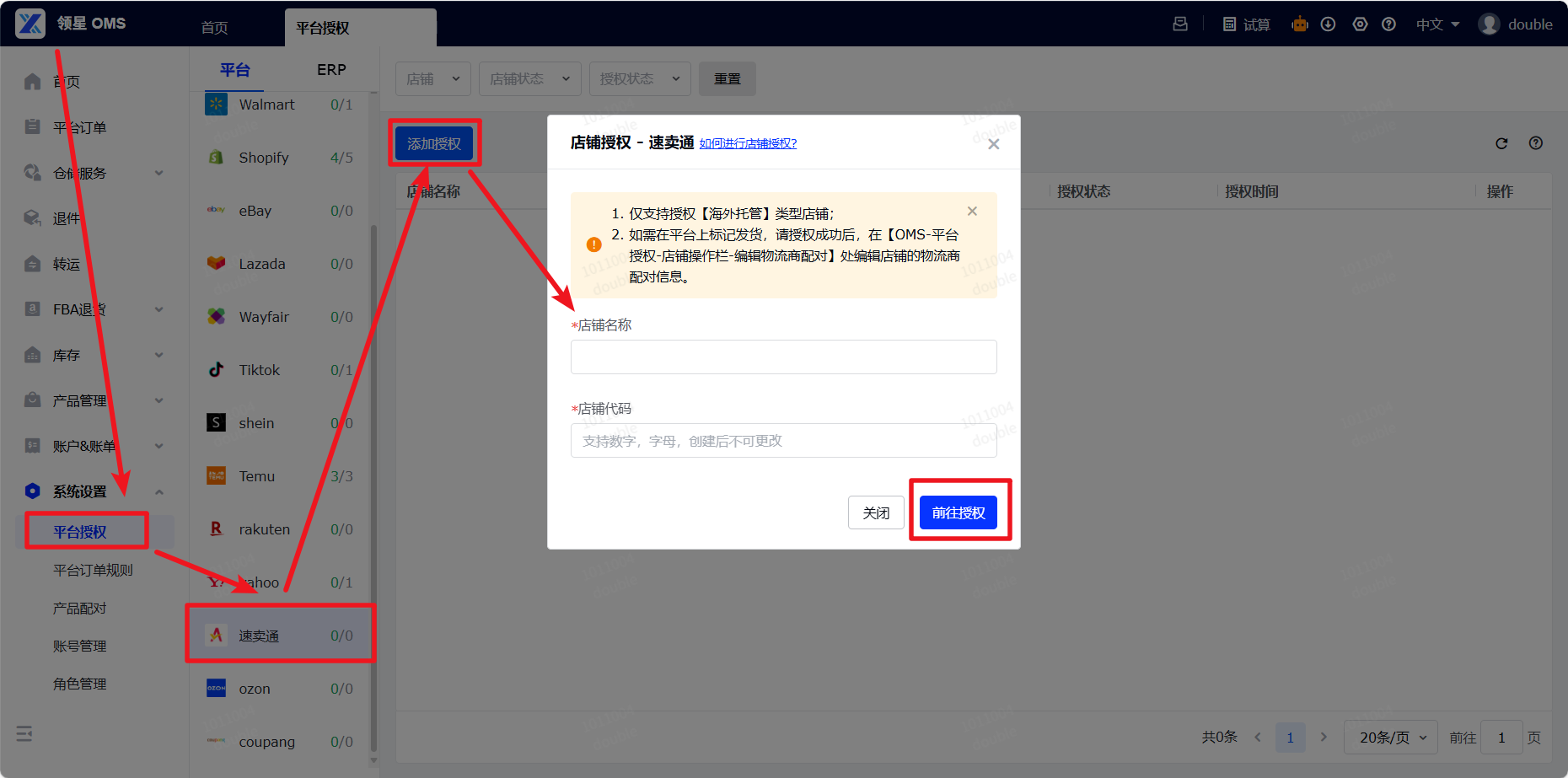 2.2 在领星OMS中授权店铺
