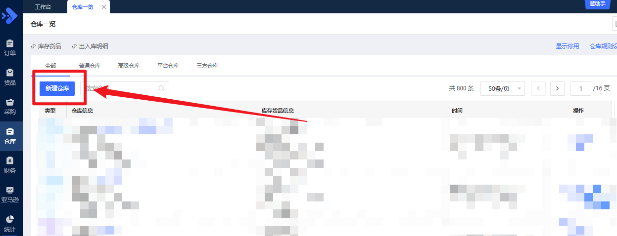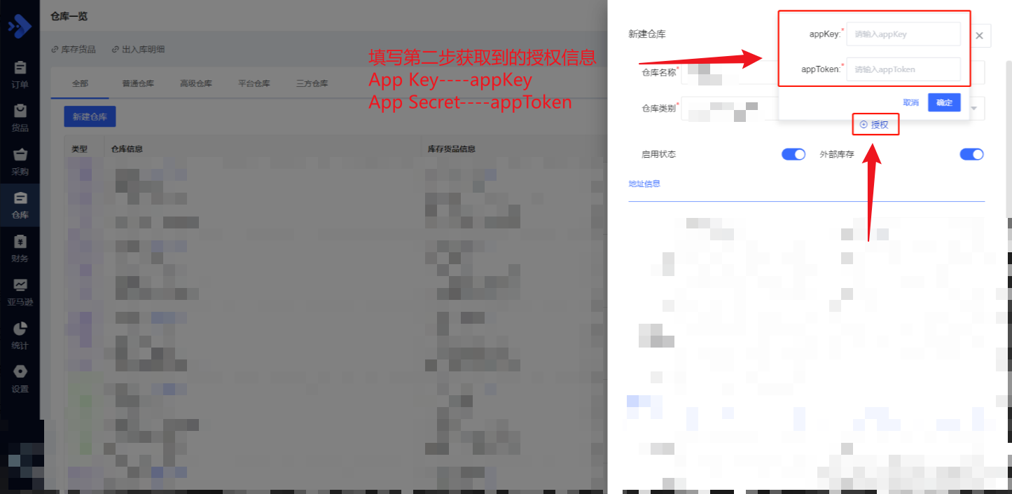 a.仓库-库内管理-仓库一览-新建仓库,选择需要授权的三方海外仓