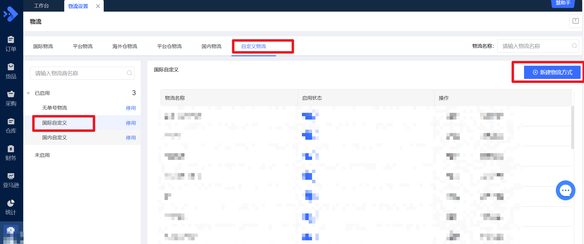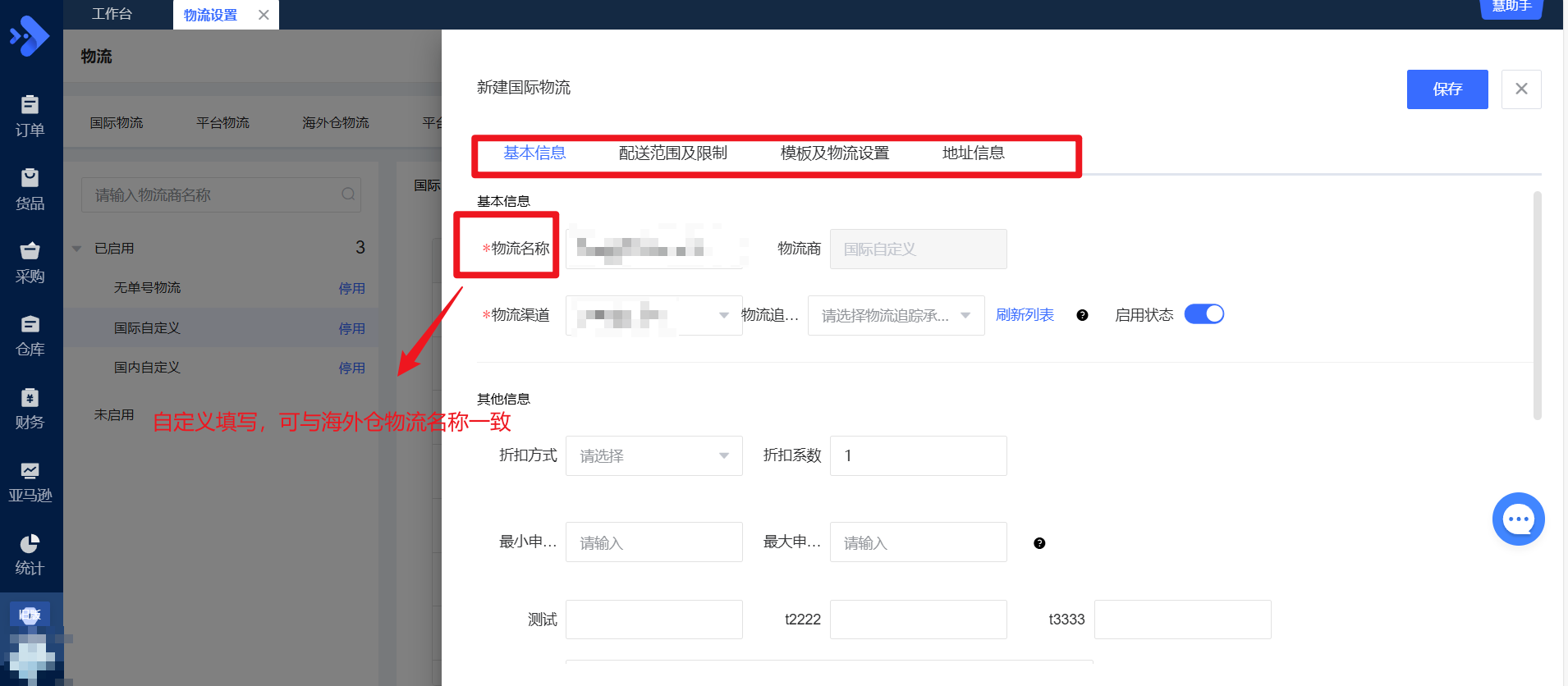 设置路径:设置-授权管理-物流设置-国际自定义物流-新建物流方式