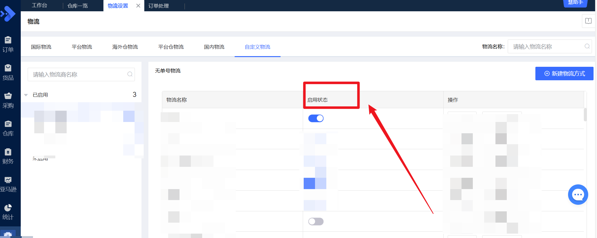 若需要使用该物流方式,则需要点击【启用状态】启用当前物流方式方可使用该物流。