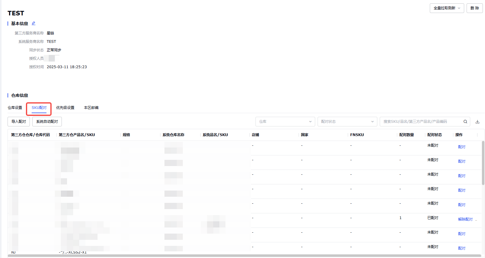 Q6:领星ERP已完成SKU配对,但海外仓库存对比界面为空