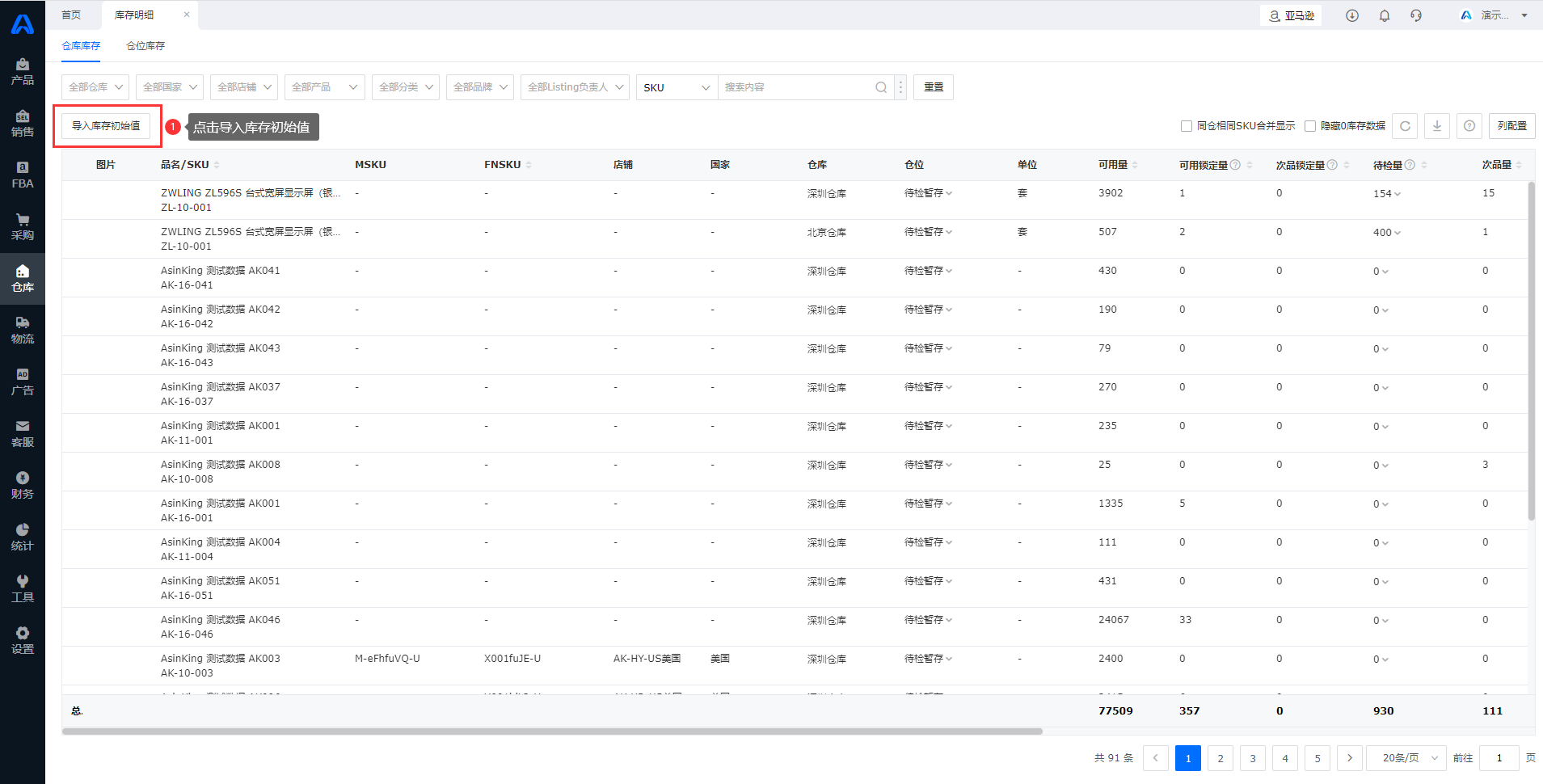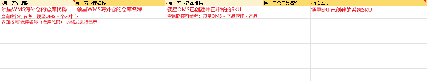 ※在完成三方仓启用及SKU配对的情况下,领星ERP即可自动同步海外仓库存量。导入库存初始值是为了维护库存成本,可以按需操作。