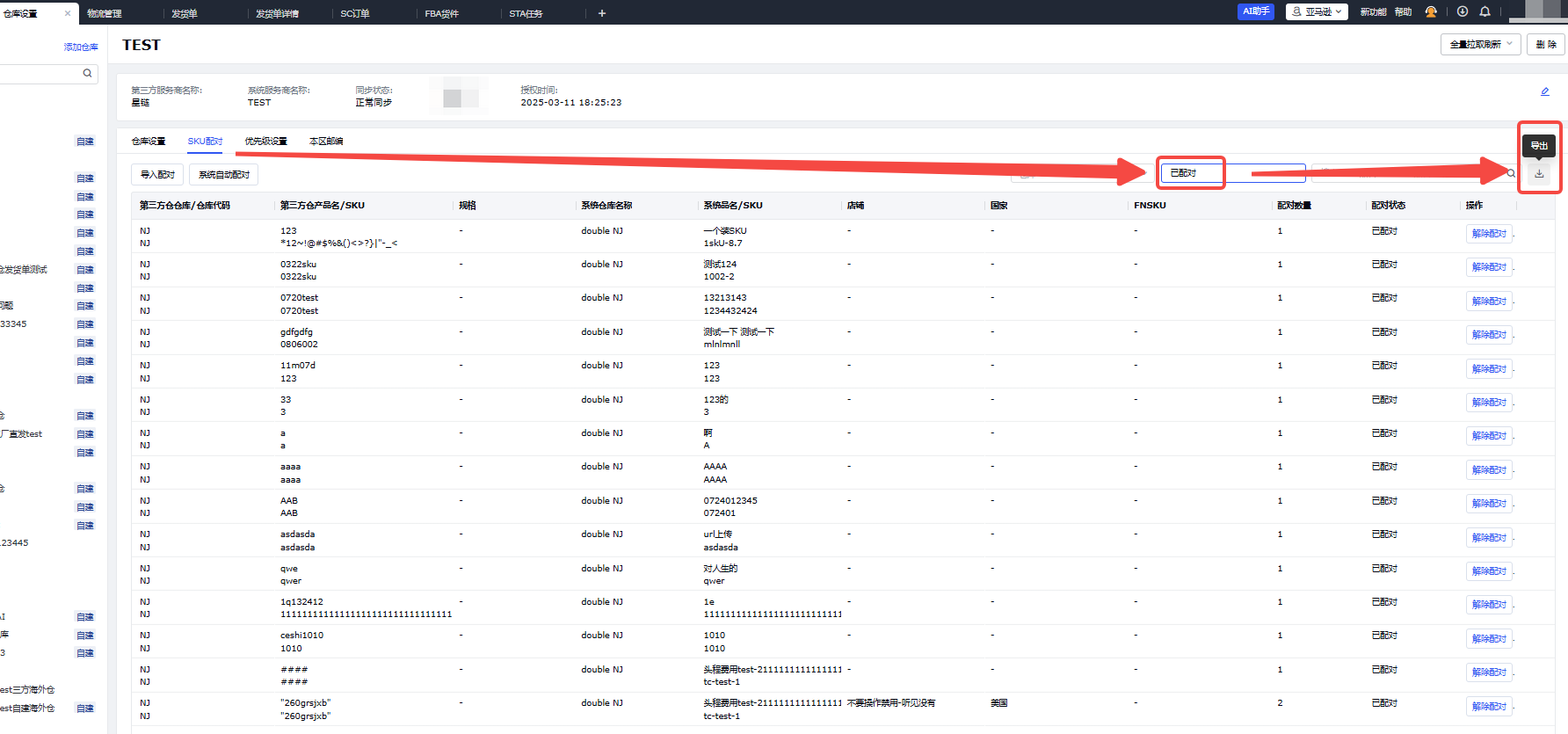 第一步:在领星ERP导出已配对的商品信息,操作路径:领星ERP - 仓库设置 - SKU配对。
