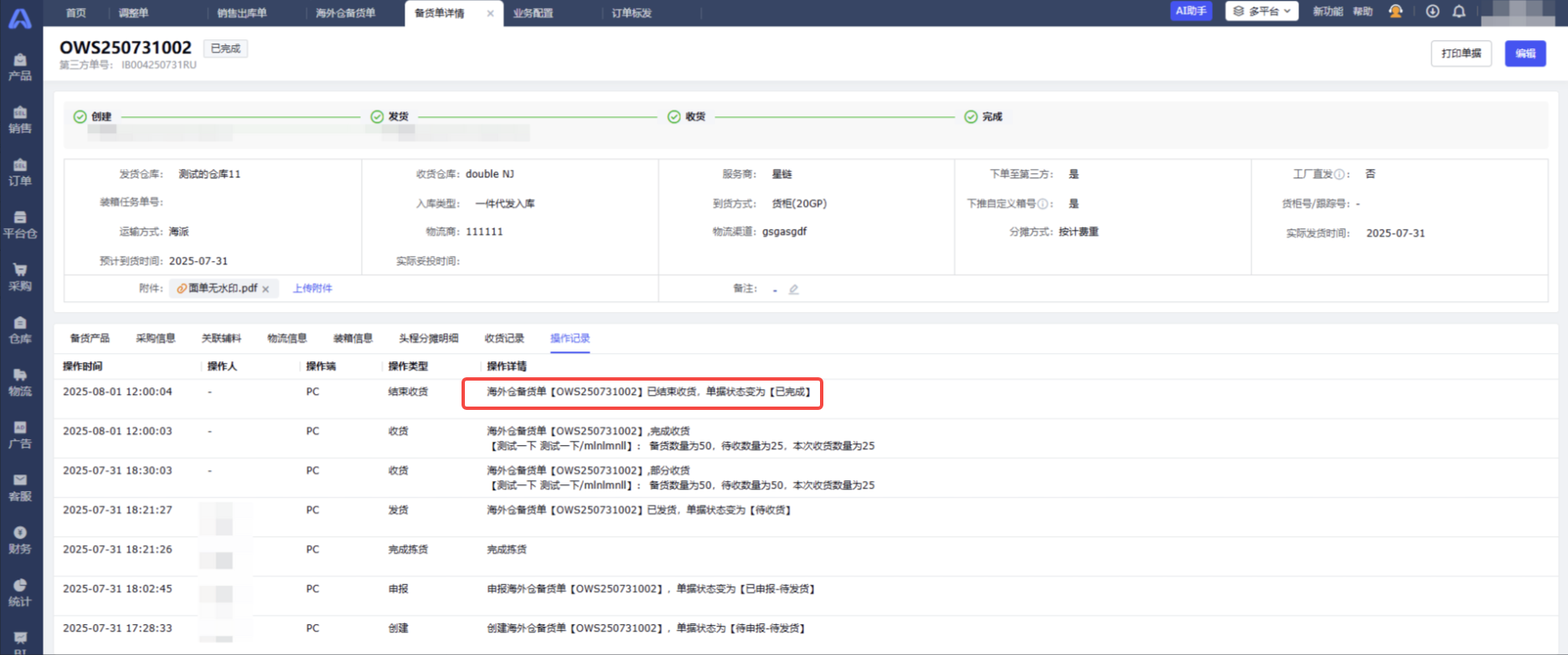 开启后,推送至领星OMS的海外仓备货单将自动同步海外仓的收货上架状态。