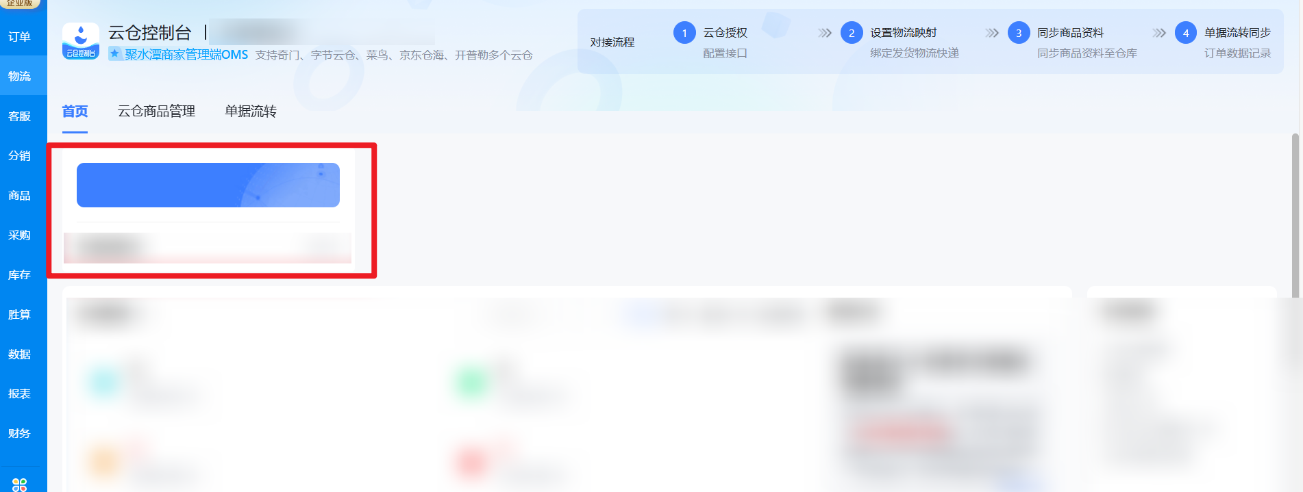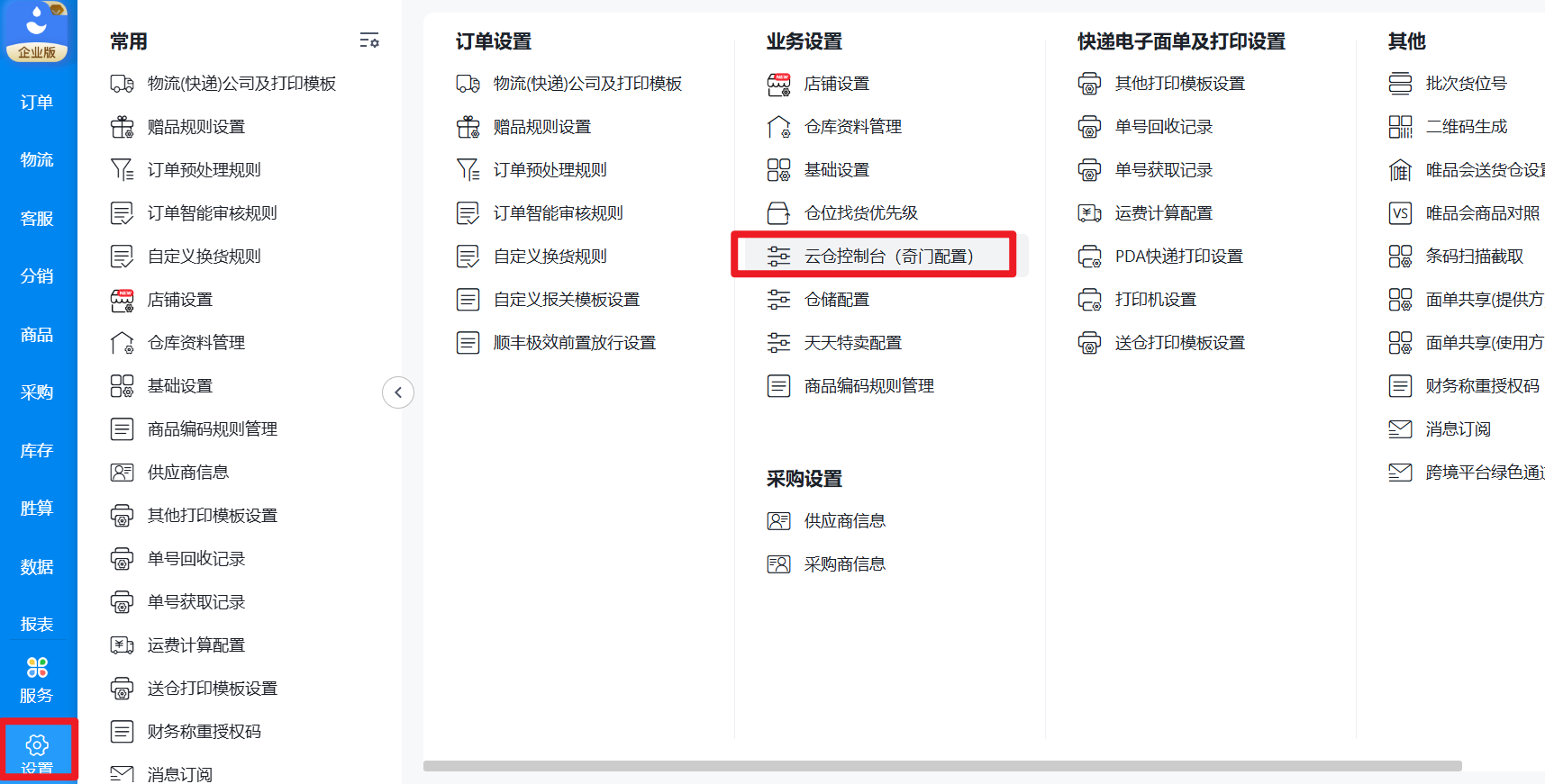(4)进入聚水潭ERP:点击【设置】-【云仓控制台】