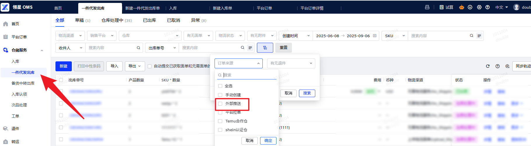 Q1:用聚水潭ERP推送的平台订单没有同步到OMS-平台订单的位置?答案:使用ERP推单,只会同步订单到OMS-仓储服务-一件代发出库单的位置,且订单来源显示外部推送。