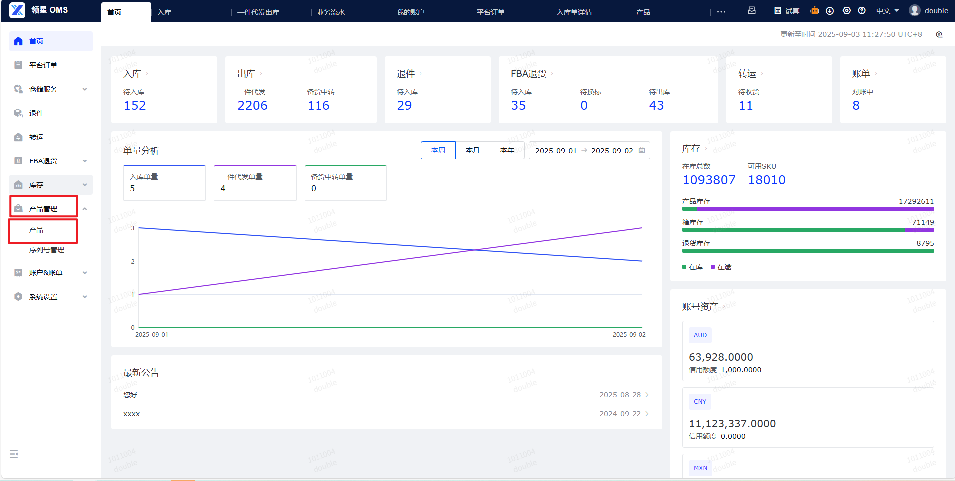 (2)创建产品:在OMS左侧菜单中点击产品管理,点击产品,创建系统产品OMS快速上手手册(常用功能) | 领星WMS帮助中心-卖家版