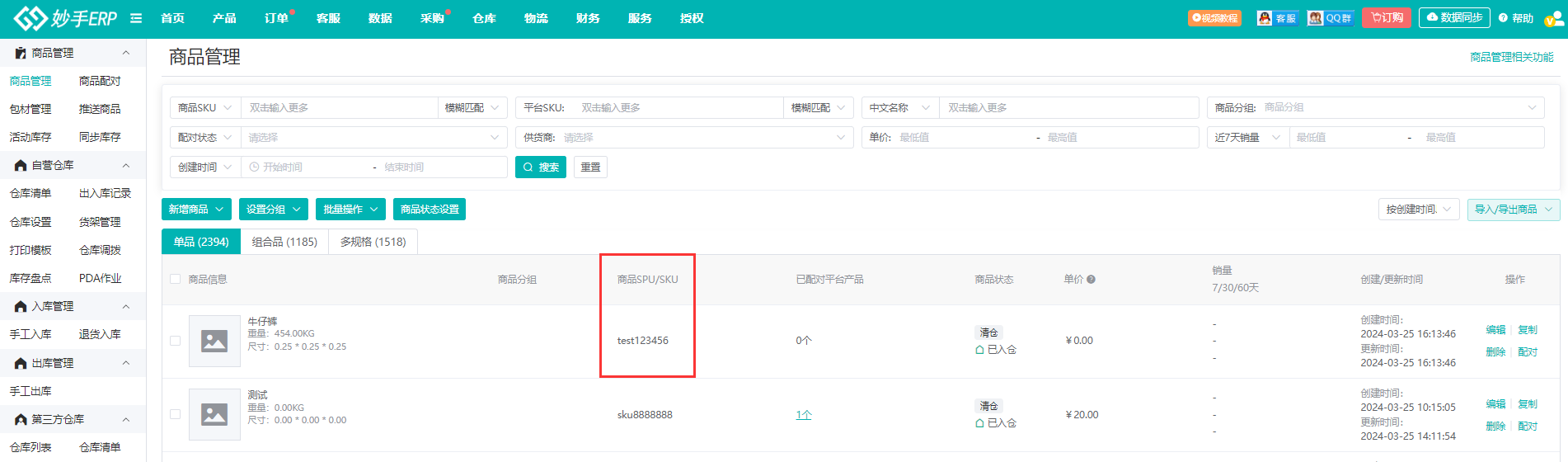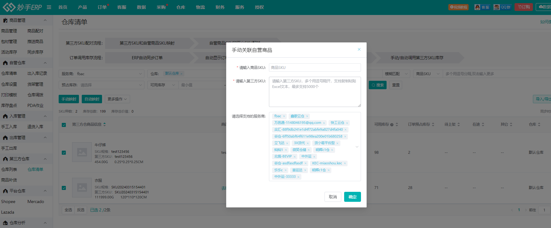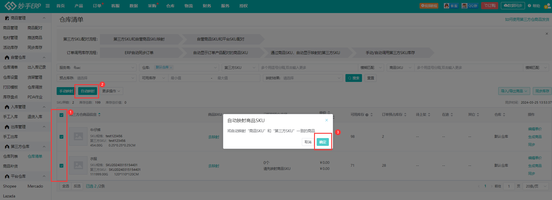 回到仓库清单,商品SKU与三方仓SKU会自动映射