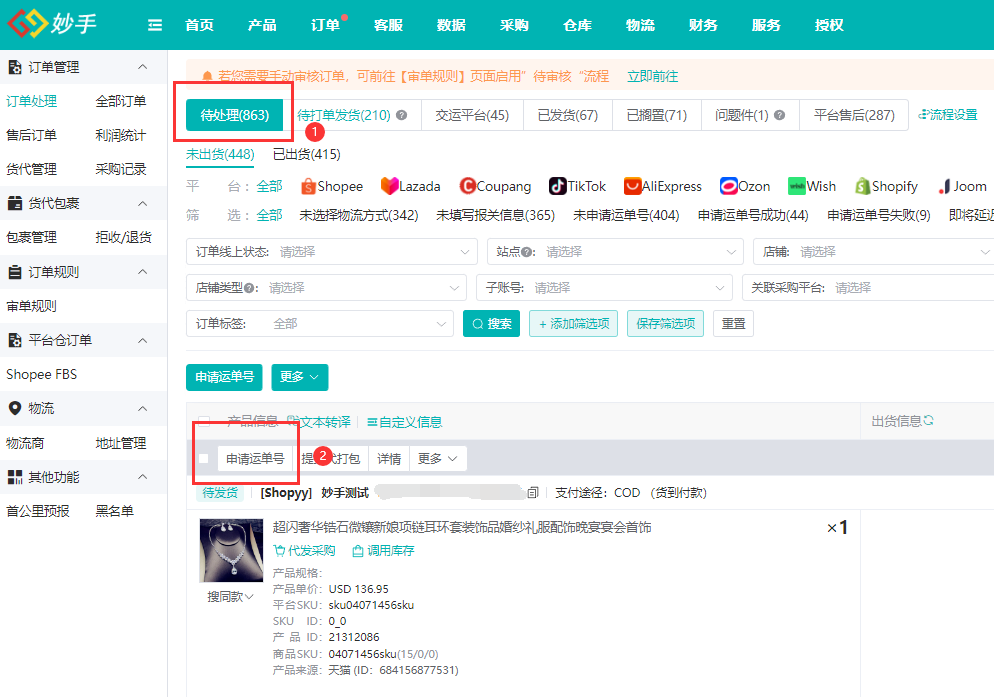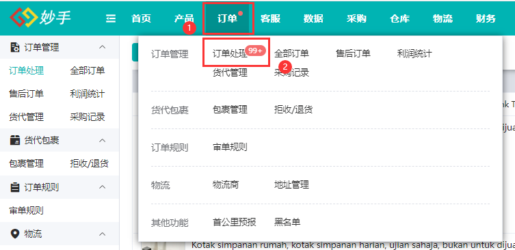 (1)打开妙手ERP-订单-订单管理-订单处理