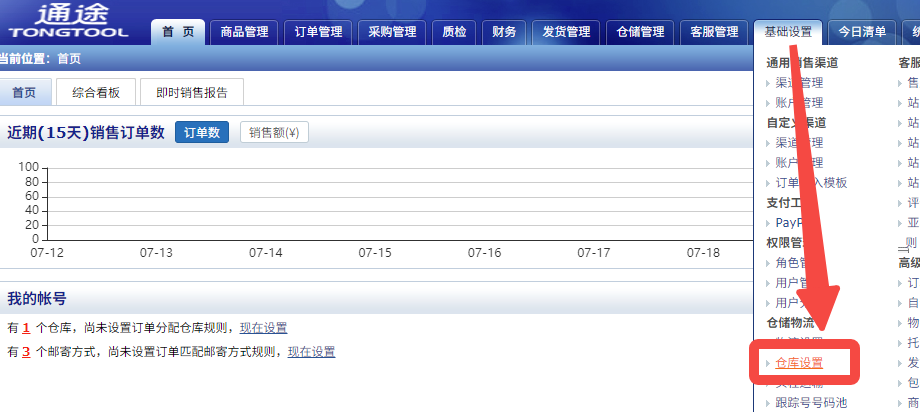 路径:通途ERP - 基础设置 - 仓库设置