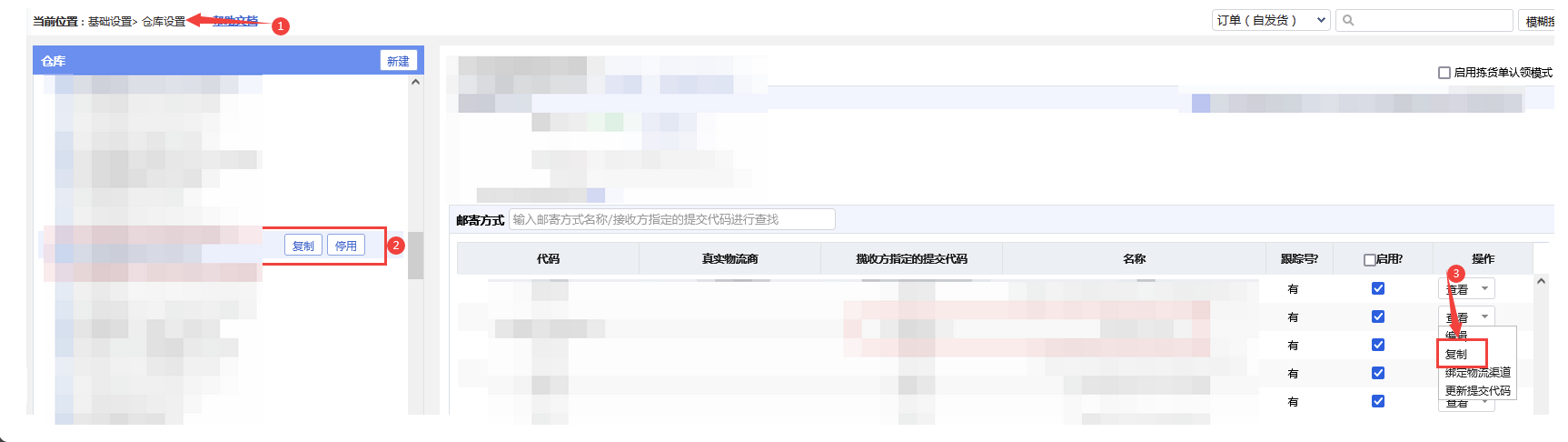 如果有多个平台物流渠道的面单需要推送领星OMS,请先操作“复制”邮寄方式,再对应绑定对应的平台物流渠道。