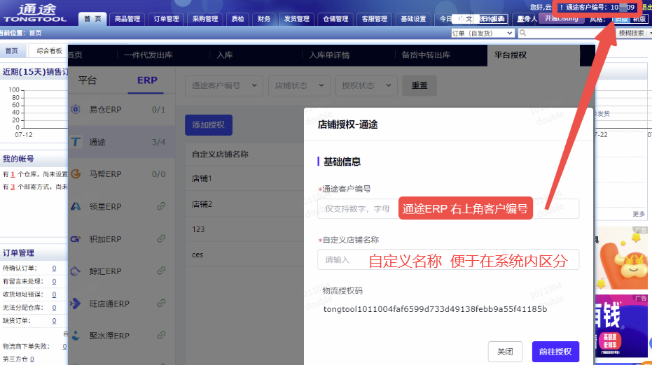 2.1.2. 通途ERP填写物流授权码