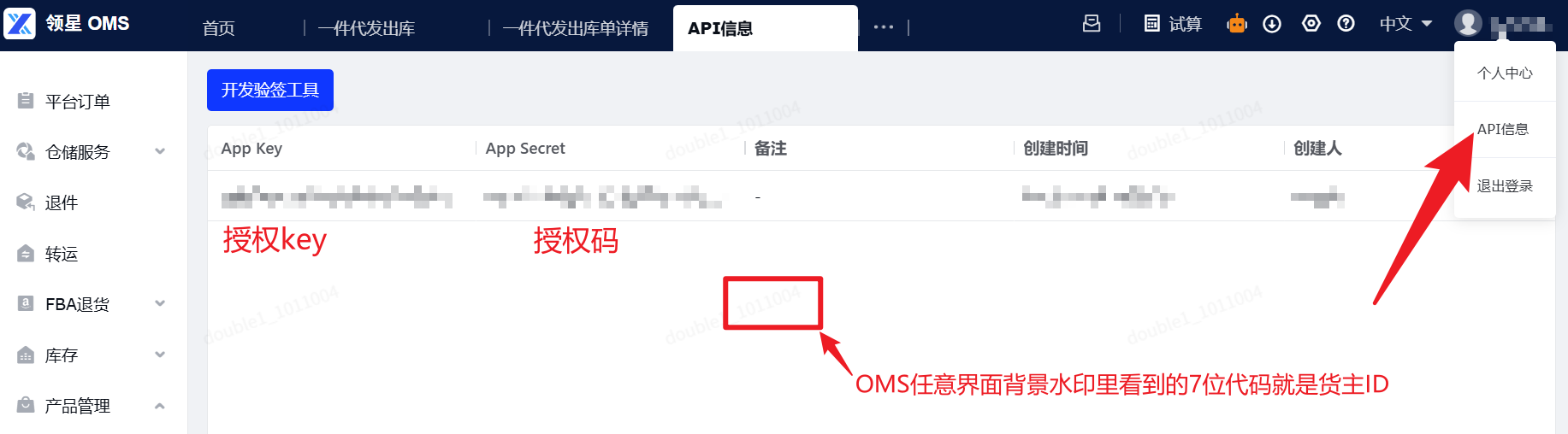 - 登录OMS获取绑定合作仓需要的API信息 ,完成合作仓绑定