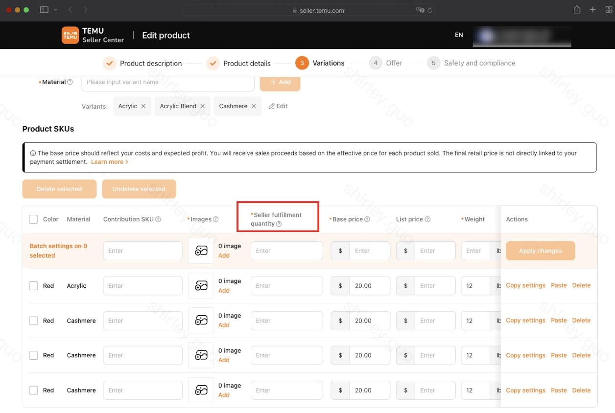 - 对于希望按合作仓模式发货的 SKU,可以将自发货库存设置为 0,避免商品上架出单后无法履约