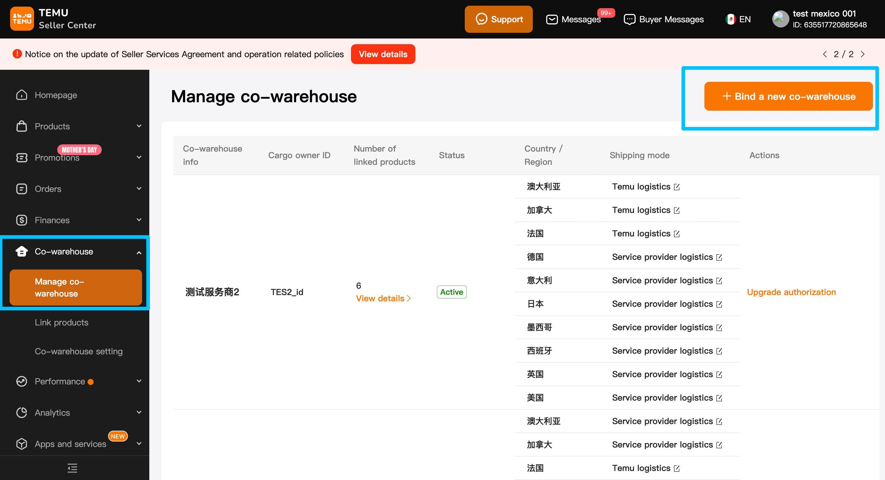 登录 https://mx.seller.temu.com/home.html,进行合作对接仓的授权绑定
