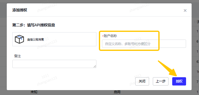 2.1.1. 授权自定义物流商账号