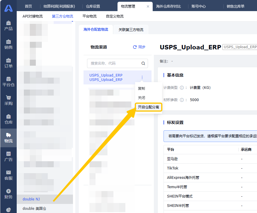2.2.1. 领星ERP启用仓库配置的自定义物流商渠道