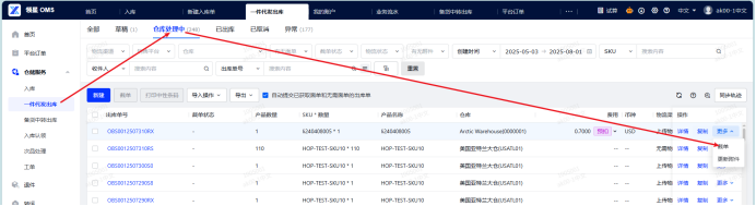 - 出库单在草稿状态:订单右侧 - 更多 - 取消