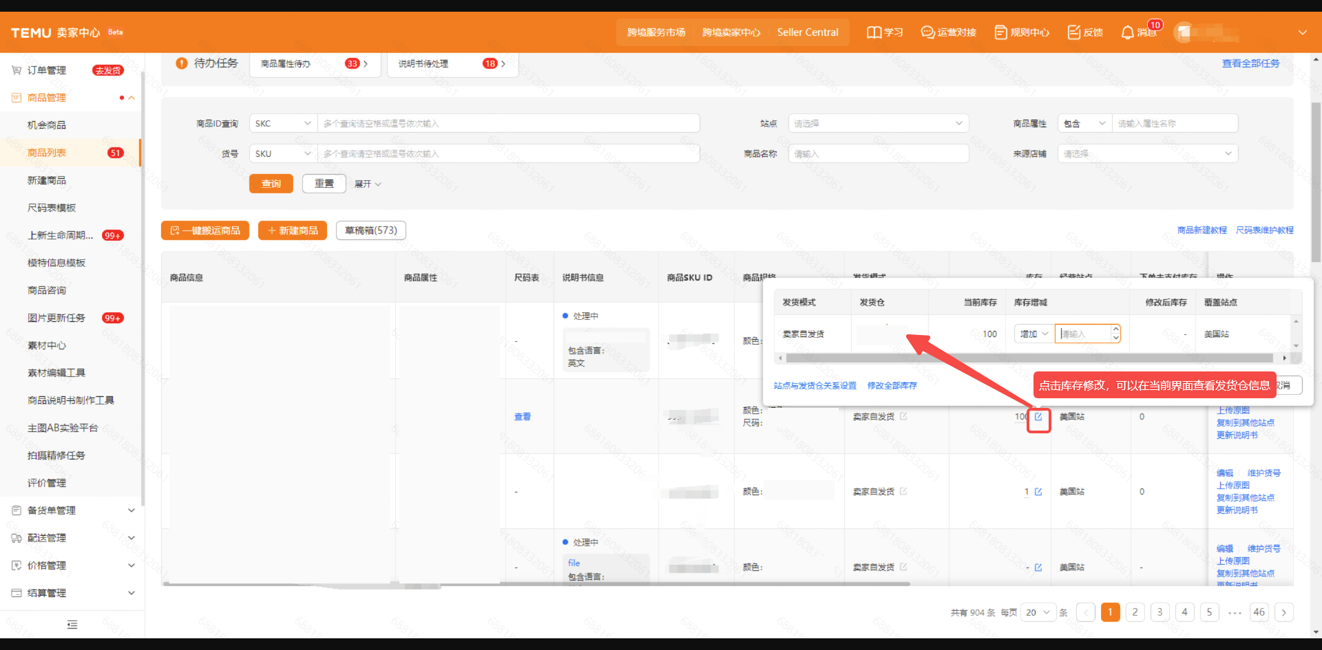 方式一:可以在卖家后台-商品管理-库存维护中找到SKU的发货仓库名称