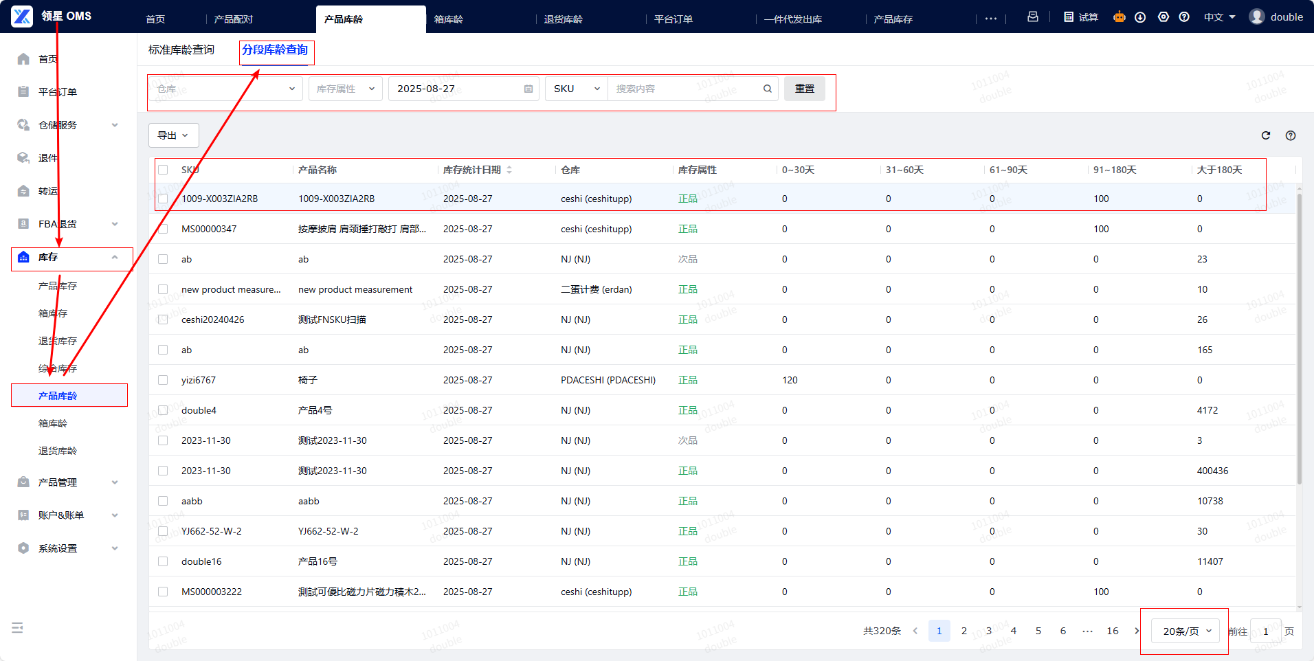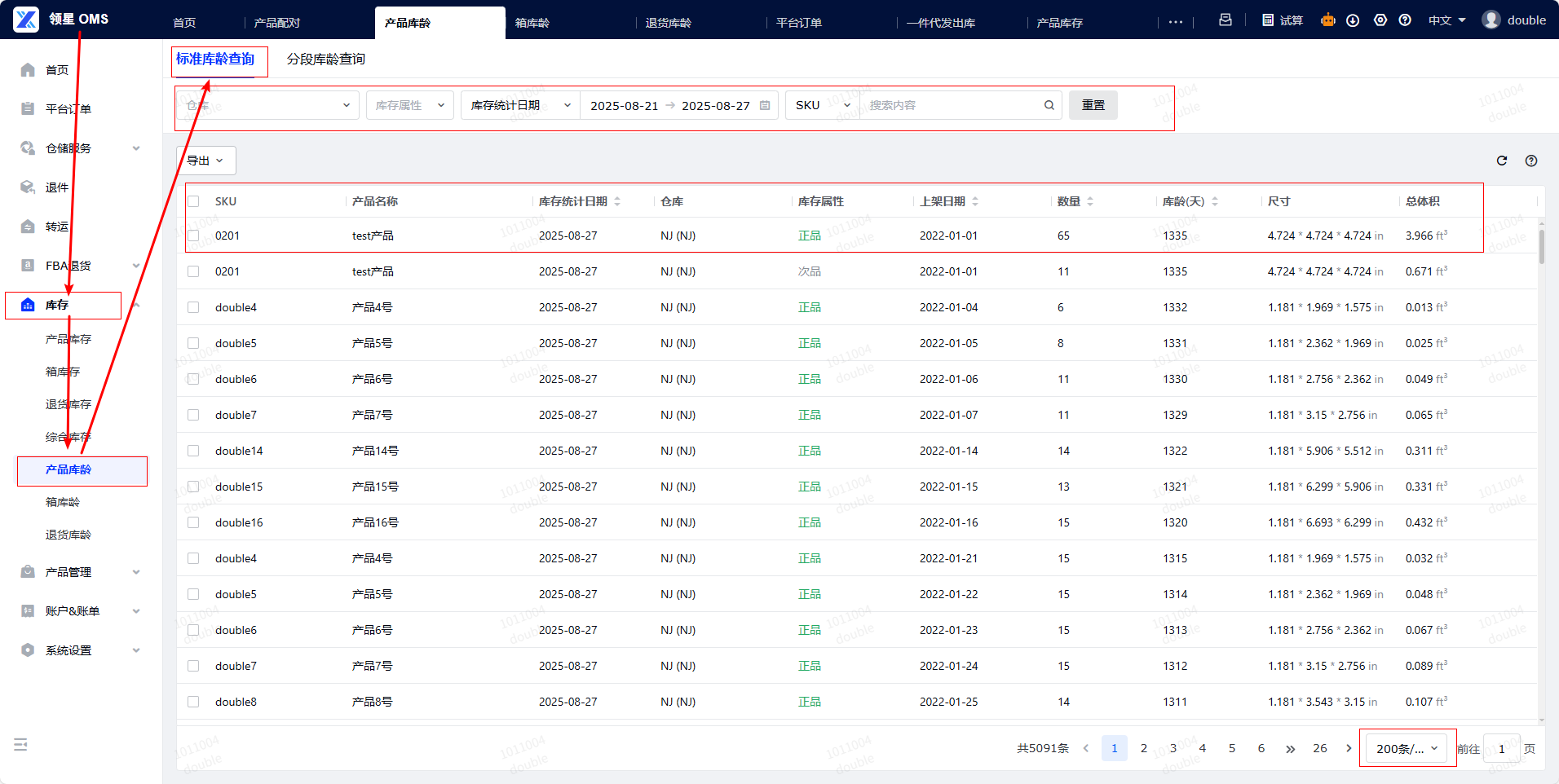 操作路径:登录您的OMS系统,导航至【库存-产品库龄】