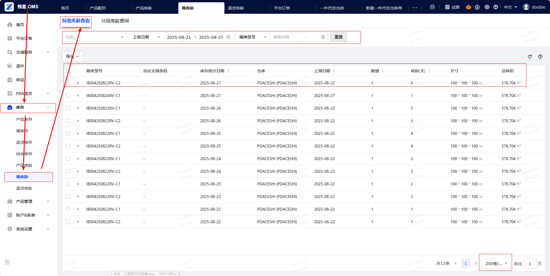 操作路径:登录您的OMS系统,导航至【库存-箱库龄】