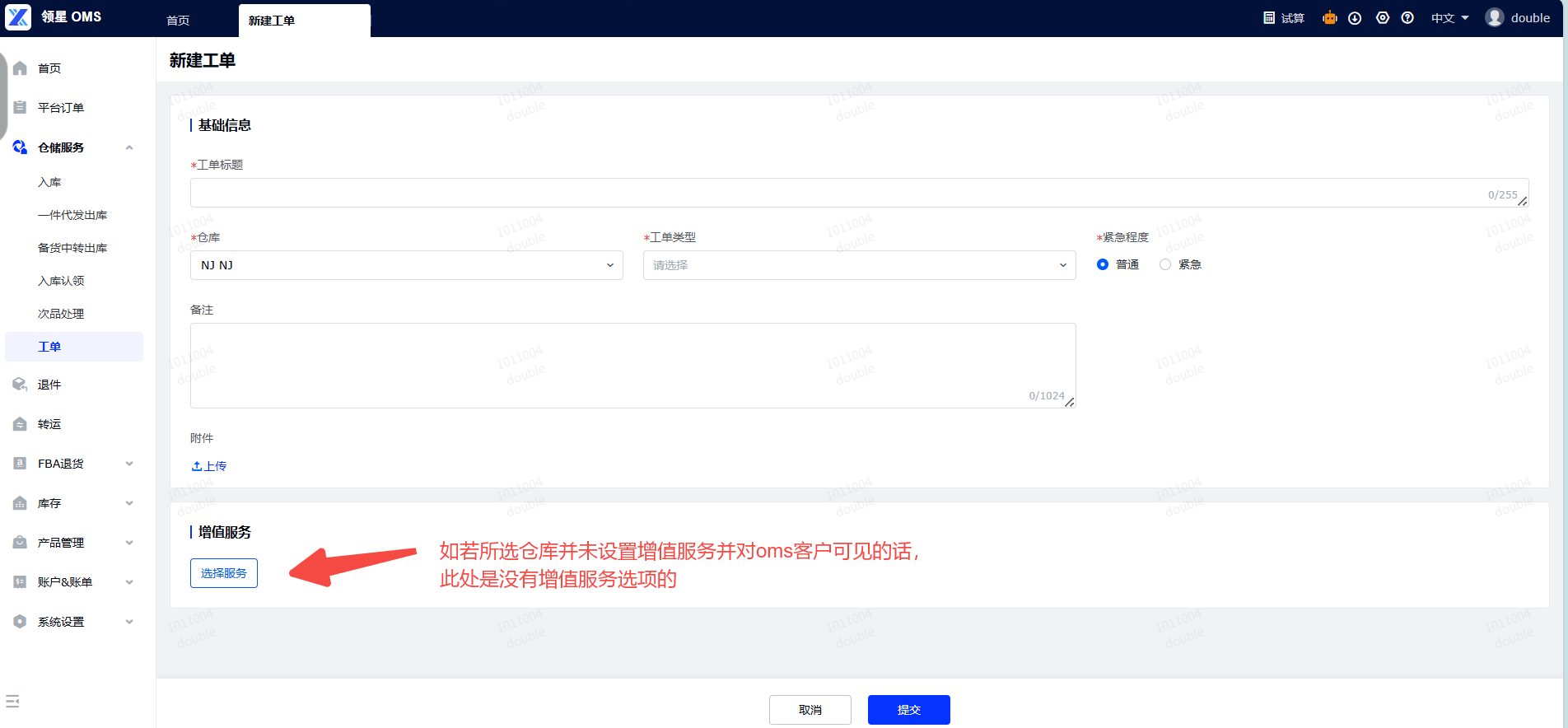 (5)确认增值服务需求:若您的仓库有设置响应增值服务,且您需要仓库提供额外服务(如贴换标等),可在此勾选相应的增值服务项。