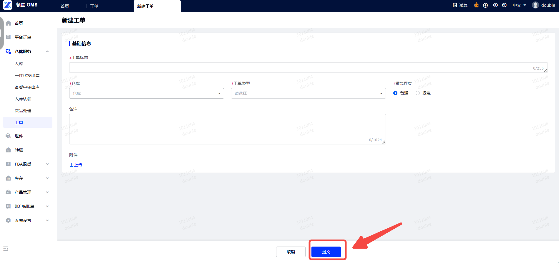 (6)提交工单:信息确认无误后,点击提交按钮,系统将根据您提交的信息,创建工单。