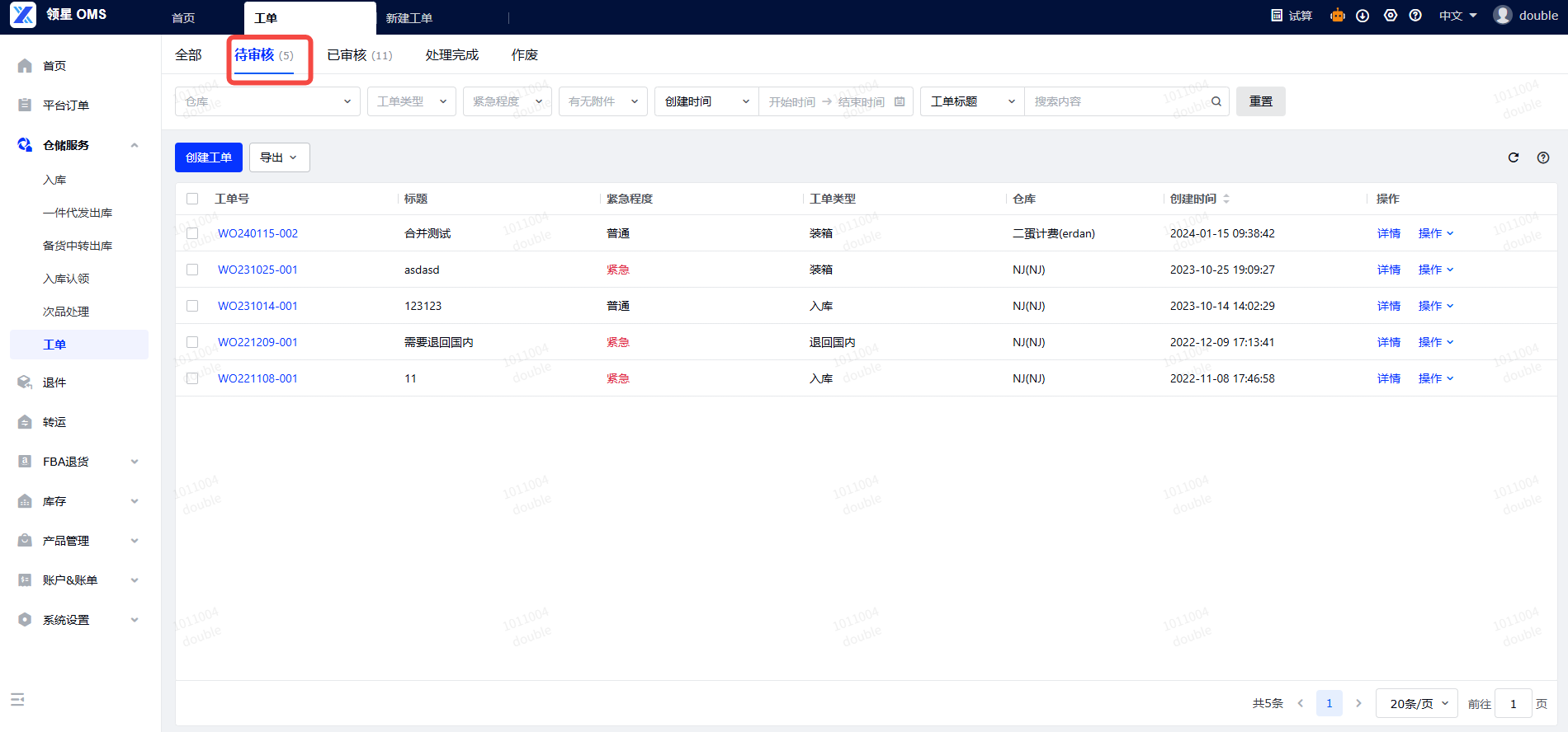 (7)工单进入待审核状态:工单创建成功后,系统将自动将其状态更新为待审核。