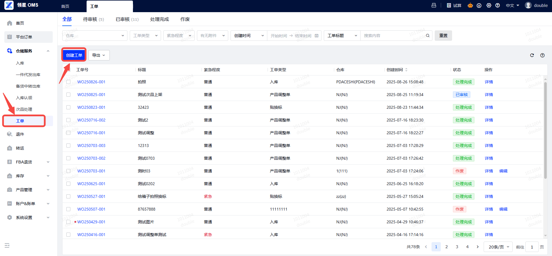 作用:用于仓库与 OMS 运营高效协同,涵盖业务咨询、异常反馈、需求提报等场景。本章将指导您如何通过 OMS 系统创建工单,实现标准化沟通。