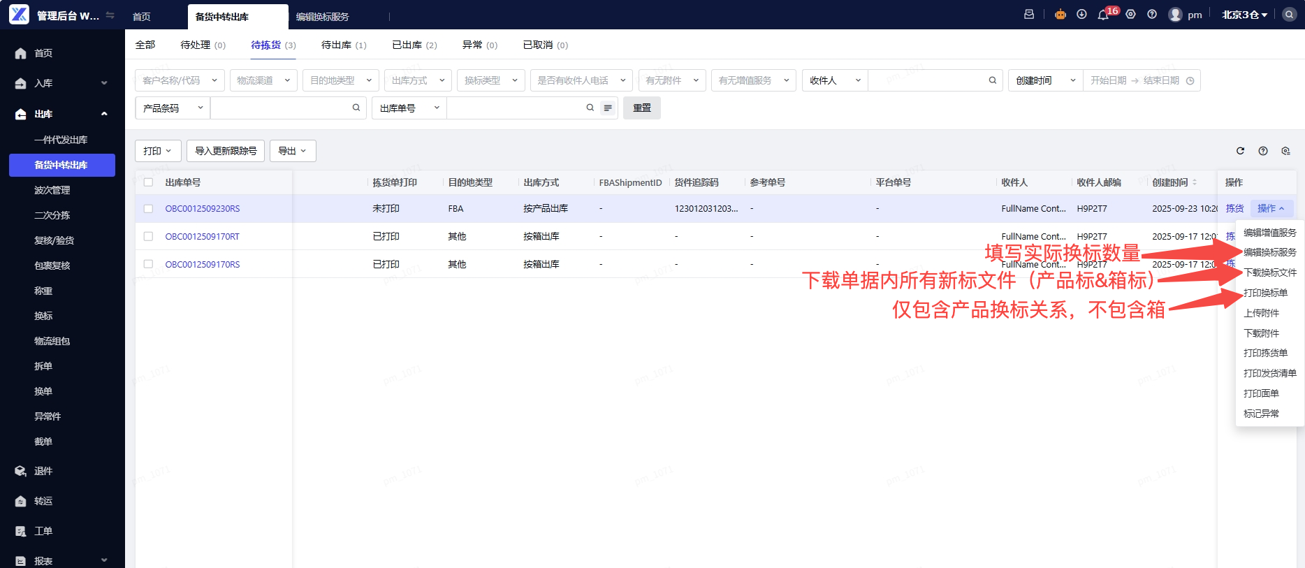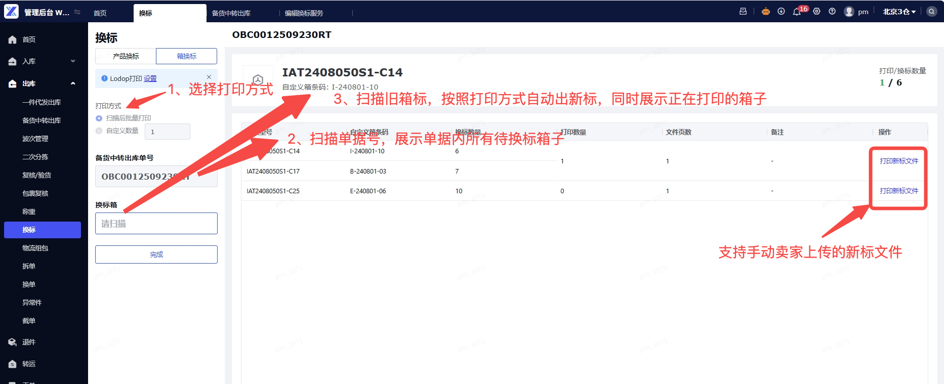 处理拣货,拣货单中新增【是否需要换标】的标签,方便拣完货直接进行扫码换标。