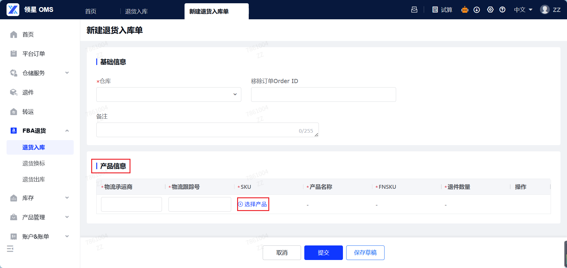 (1)进入OMS系统: 登录您的OMS管理后台,导航至FBA退货菜单。