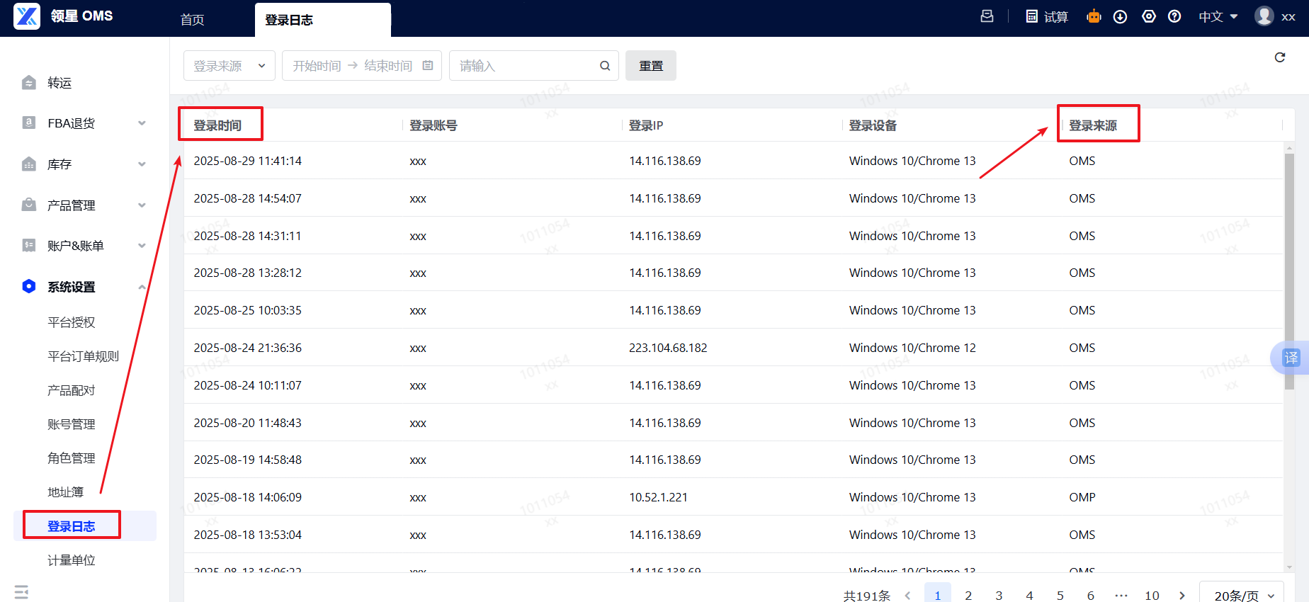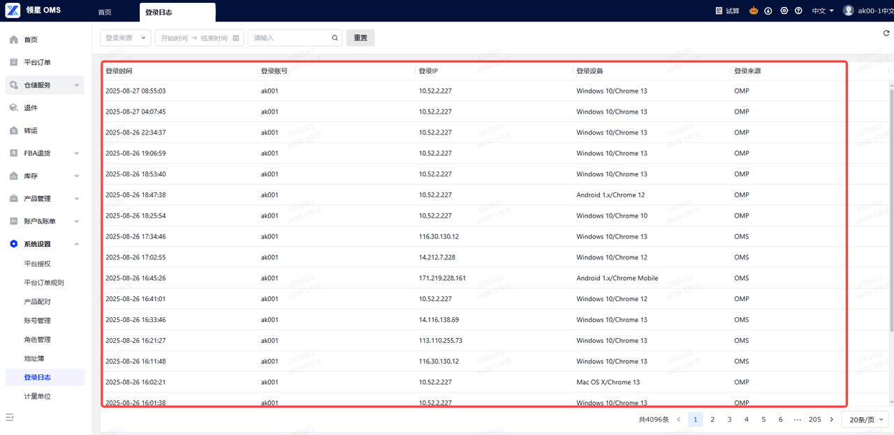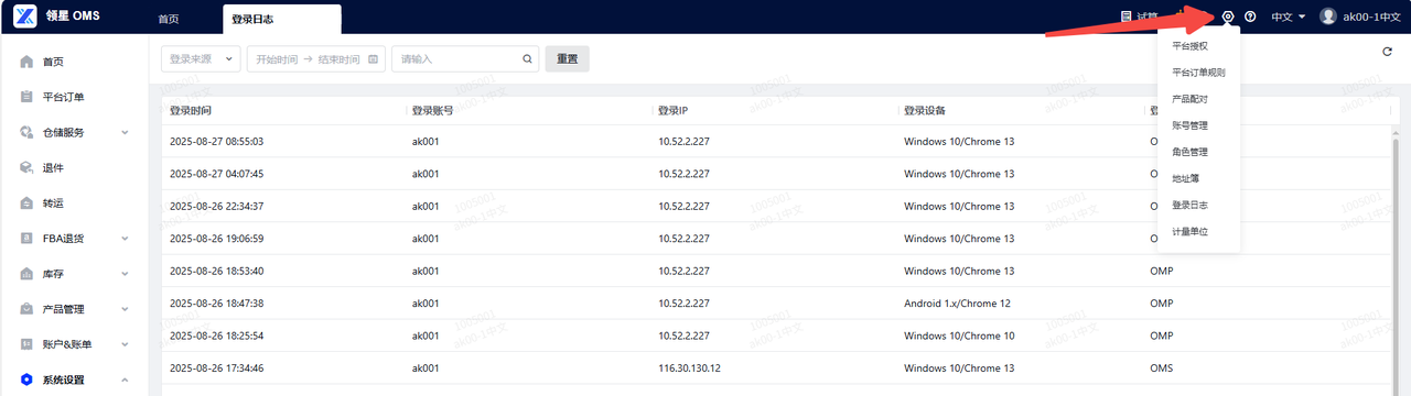 答案:可以在OMS-系统设置-登录日志,查询您账号的登录来源和日期
