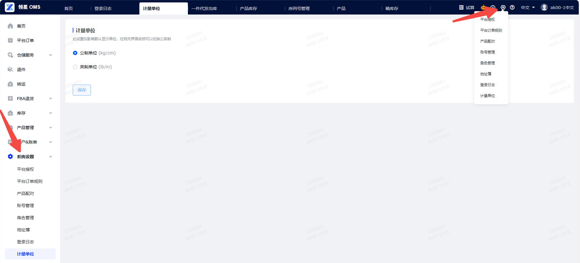 定义:计量单位就是您登录OMS默认展示时的单位,有两种计量单位体系供您选择(公制单位、英制单位)作用:设置计量单位能决定系统内数据默认的显示方式,确保在库存管理、产品信息展示、订单处理等多个环节,重量和长度相关数据呈现的一致性 。