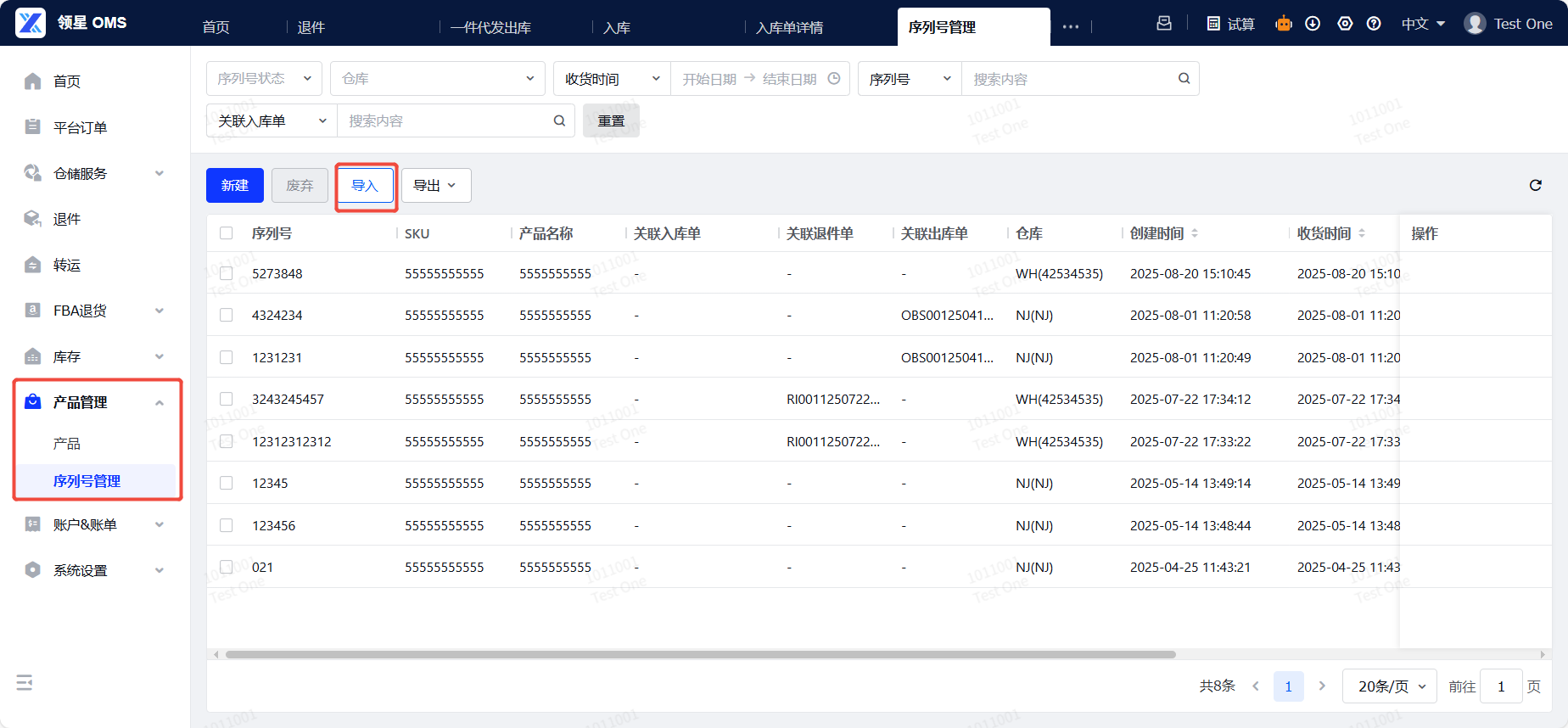 OMP:产品管理-序列号管理OMS:产品管理-序列号管理WMS:库内-序列号管理