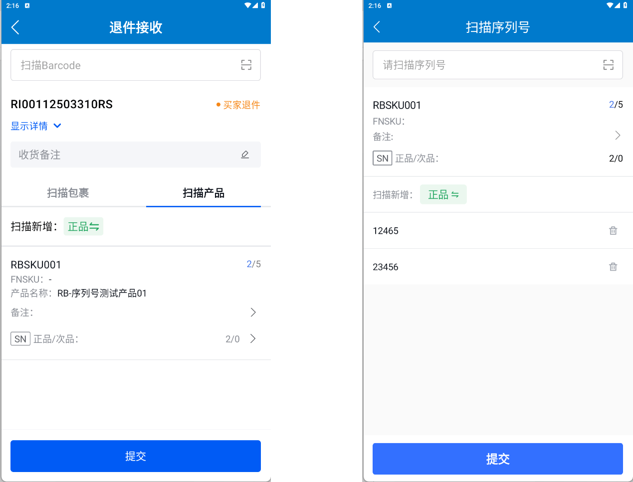 - PDA端进行退件清点时,需要先扫描SKU进入序列号扫描页面,再进行对应SKU的序列号录入。
