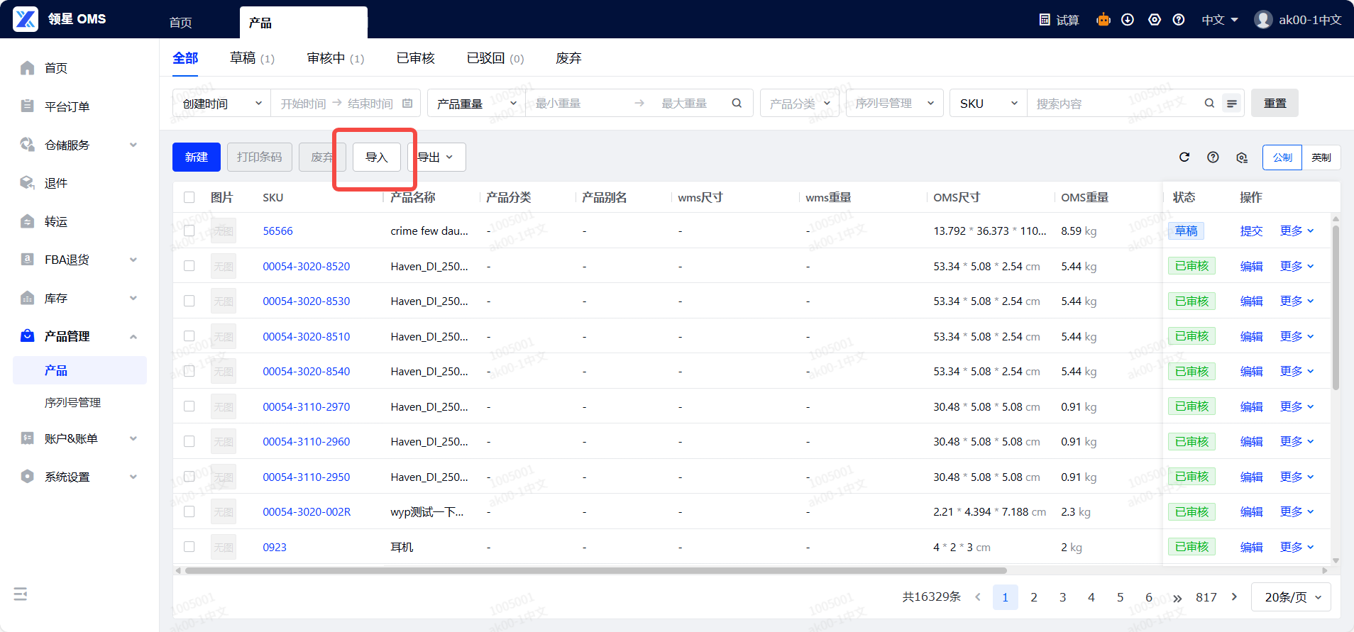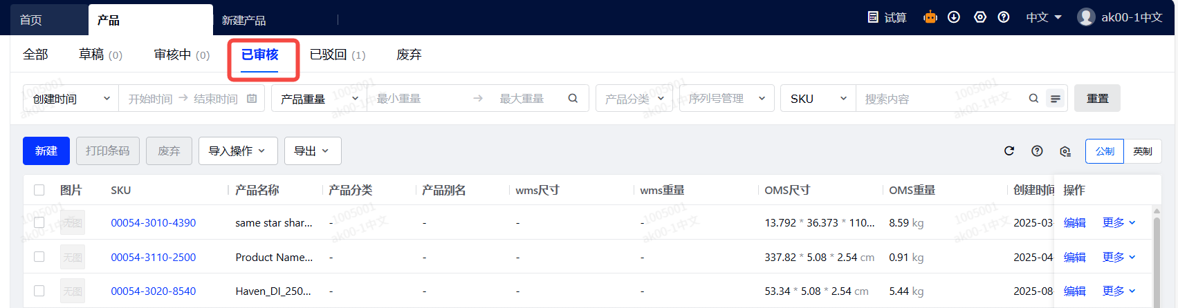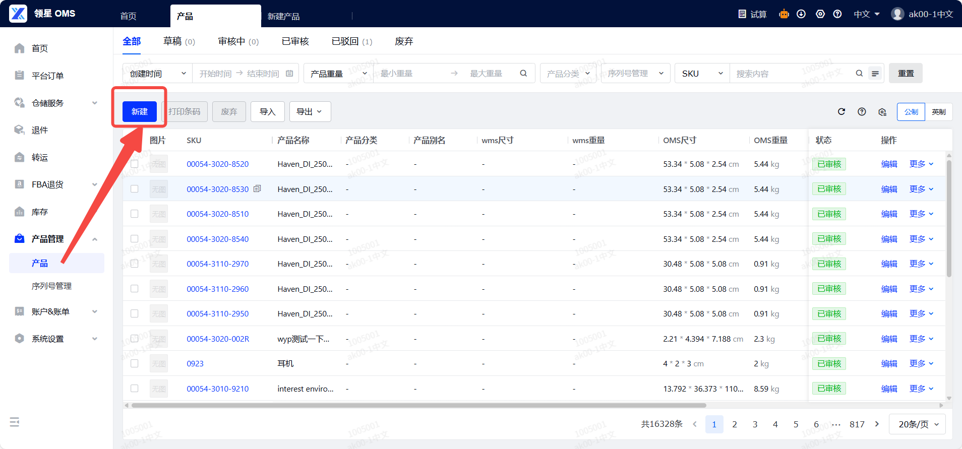 定义:在OMS系统中创建产品,是指将需要在指定仓库进行入库、出库等操作的产品信息录入系统,并提交至仓库方进行审核的过程。