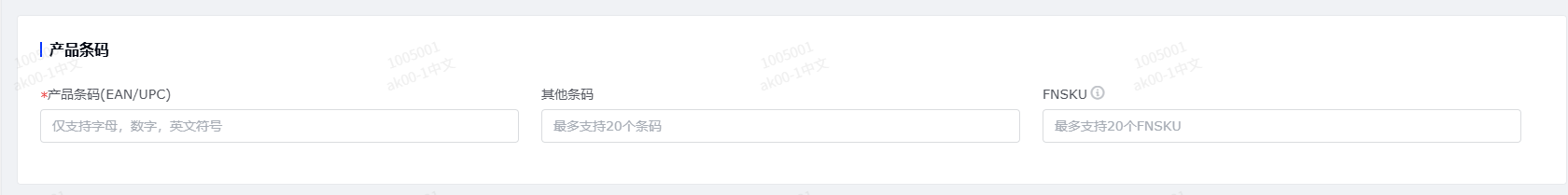 a.产品条码为必填项,且不可与其他产品的产品条码重复,若产品自身无条码(EAN/UPC),可填写与SKU一致。